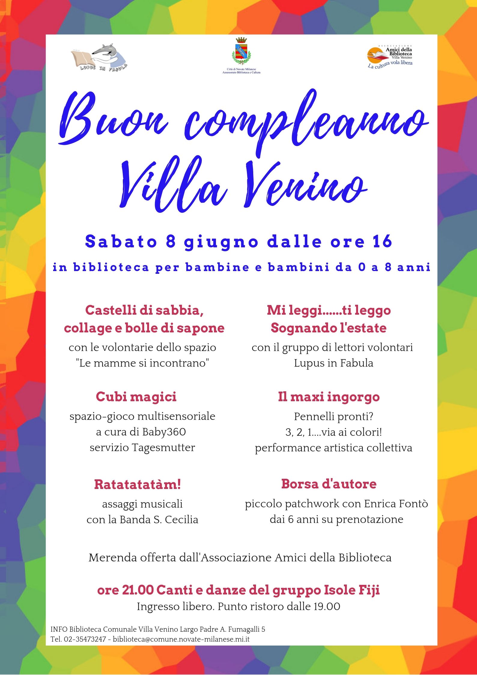 Biblioteca Comunale Villa Venino, Largo Padre A. Fumagalli 5 Tel. 02-35473247 - biblioteca@comune.novate-milanese.mi.it