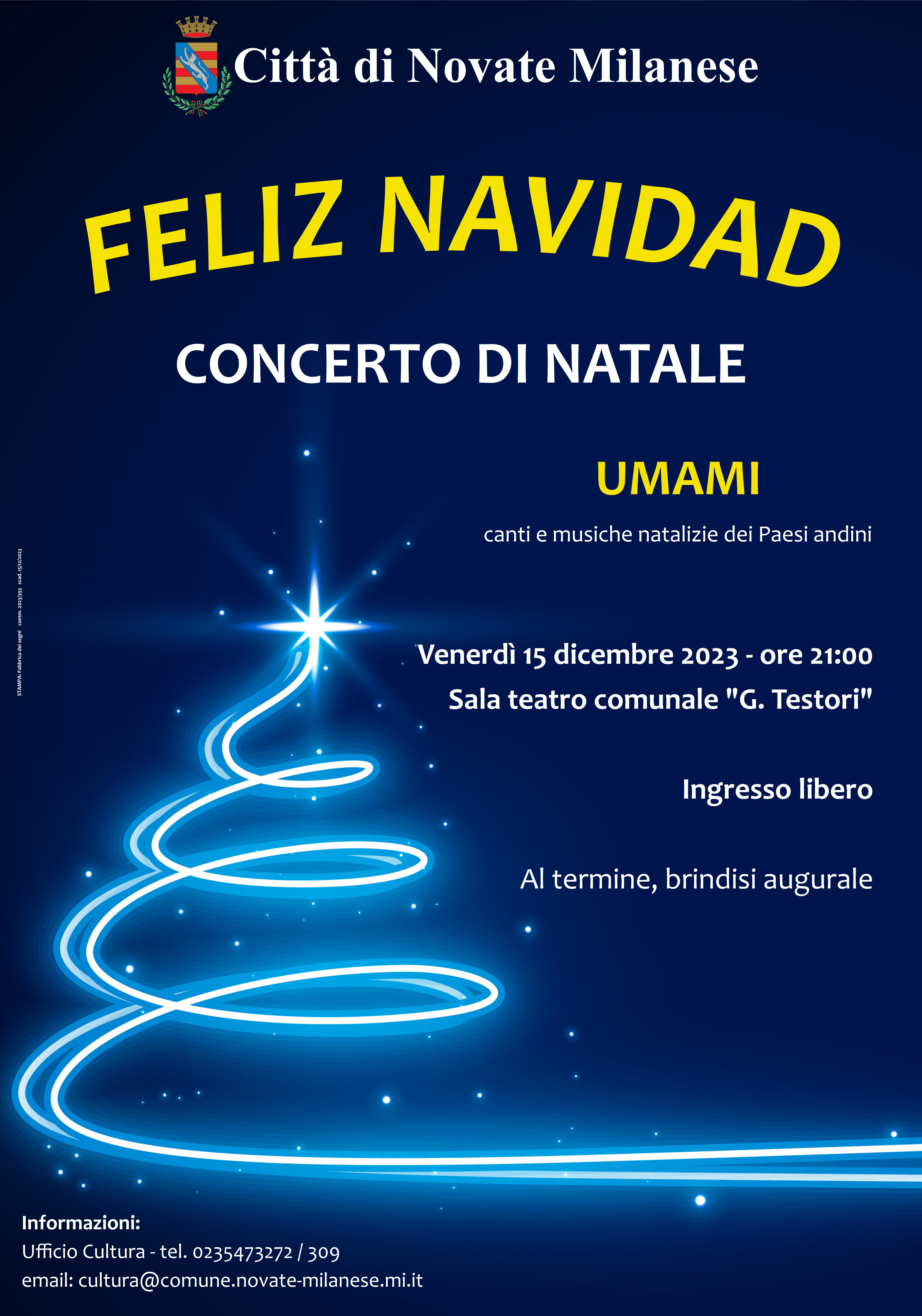 Venerdì 15 dicembre 2023, ore 21 - sala teatro comunale "G. Testori", via Vittorio Veneto 18
